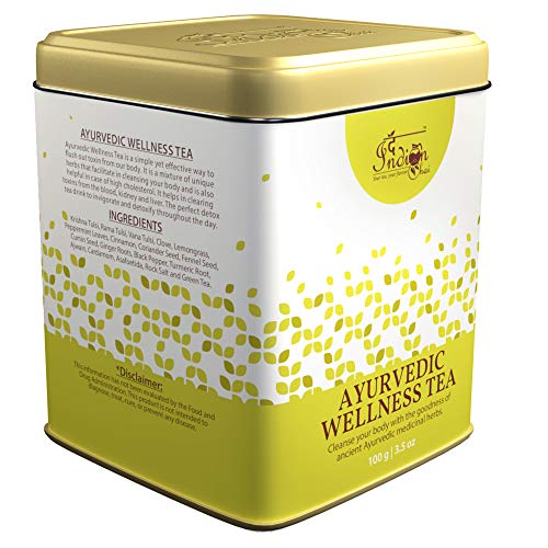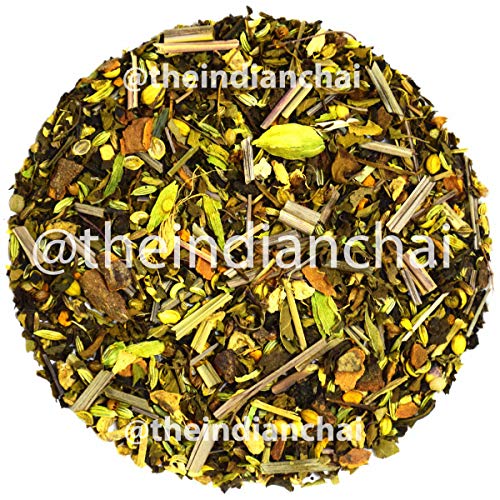 Premium Green Tea Krishna Tulsi Rama Tulsi Vana Tulsi Clove Lemongrass Peppermint Leaves Cinnamon Coriander Seed Fennel Seed Cumin Seed Ginger Roots Black Pepper Turmeric Root Ajwain Cardamom Asafoetida and Rock Salt.