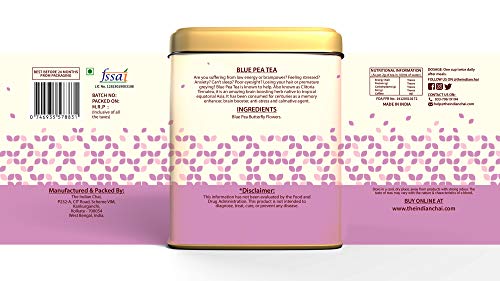 The Indian Chai Blue Pea Tea Tisane 50g for Improving Eyesight & Good for Hair & Skin, Makes 100 cups