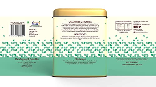 Chamomile Citron is an extremely grown up herbal tea with layers of citrus aromas that are the first thing you taste when you brew a pot of this pretty blend. Not only is it delicious it also has a number of calming and health-giving qualities thanks to its all-natural Ingredients. Made with soothing chamomile flowers and subtle slices of citrus fruit this vibrant blend will rejuvenate the spirit. Chamomile is traditionally drunk by many to soothe the body and mind before bed time. -Heres a list of some of its amazing benefits: It boosts the immune system and fight infections associated with colds. It soothes the stomach and relieves bloating and indigestion. It helps you digest foods better and also reduces flatulence and digestive issues. It calms the mind and helps people relax and deal better with their stresses. This tea with its mild sedative effects is treasured for its ability to relieve insomnia and encourage a good night's sleep free of nightmares.