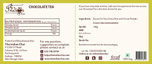 The Indian Chai - Chocolate Tea 100g with Cocoa Powder and Choco Rice | Full of Antioxidants | Improves Brain Functions | Supports Weight Loss |