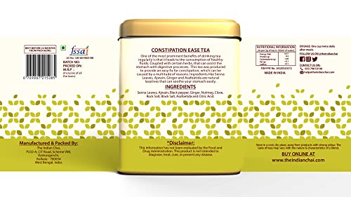 The Indian Chai – Constipation Ease Tea 100g with Senna Leaves, Ajwain, Black Salt, Hing etc for Easy Bowel, Digestion and Bloating, Herbal Tea