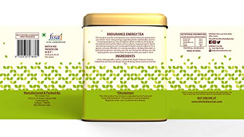 The Indian Chai – Endurance Energy Tea 100g with Amla, Ashwagandha, Gokhru, Safed Musli etc for Muscle Strength, Climbers, Runners for Focus and Energy, Detox Herbal Tea
