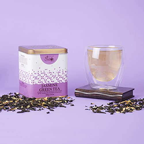 Jasmine tea is the most popular flower-scented tea in East Asia. Its enchanting unforgettable aroma is created through an artisanal method of tea scenting that dates back more than 800 years. Jasmine blossoms are gathered during midsummer evenings and spread amongst tea leaves over several successive nights. Because dried tea leaves are hydroscopic they readily absorb floral essences like jasmine. Refreshingly fragrant jasmine has been regarded as the perfect digestive tea for centuries. Jasmine is a pleasantly aromatic plant that promotes relaxation and reduces stress. Combining both the health benefits of green tea and Jasmine flowers it has been loved by Imperial Families for hundreds of years in China to stimulate appetite and digestion reduce anxiety and improve skin. This romantic tea can be enjoyed any time but is especially pleasant in the evening