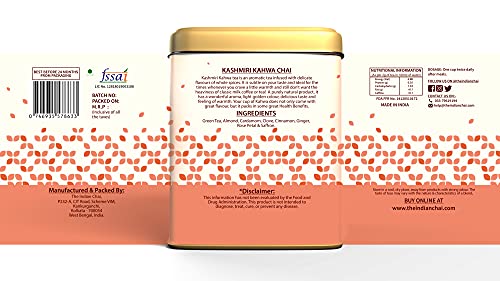 • AROMATIC TEA: Kashmiri Kahwa tea is an aromatic tea infused with delicate flavours of whole spices. Kashmiri Kahwa is subtle on your taste and ideal for the times whenever you crave a little warmth and still don€™t want the heaviness of classic milk coffe