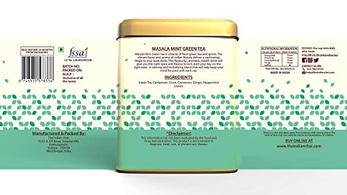 The Indian Chai - Masala Mint Green Tea 100 grams, Wellness, Flavor, and Vitality in Each Sip - Antioxidant Support, Digestive Aid, Immune Boost, Mental Clarity, and Respiratory Health