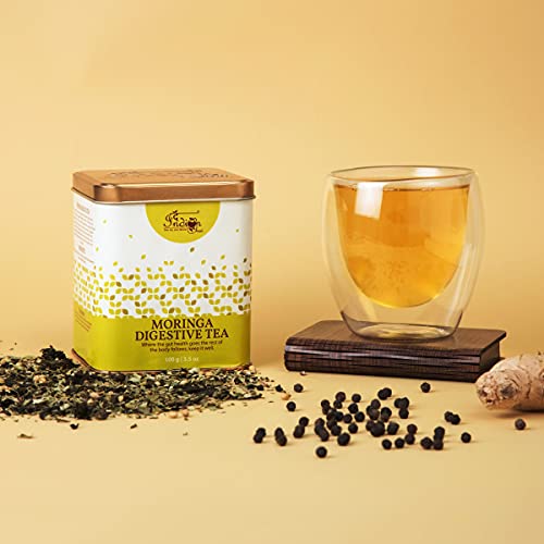 The Indian Chai - Moringa Digestive Tea 100g with Cumin, Coriander, Peppermint etc for Digestion and Weight Loss