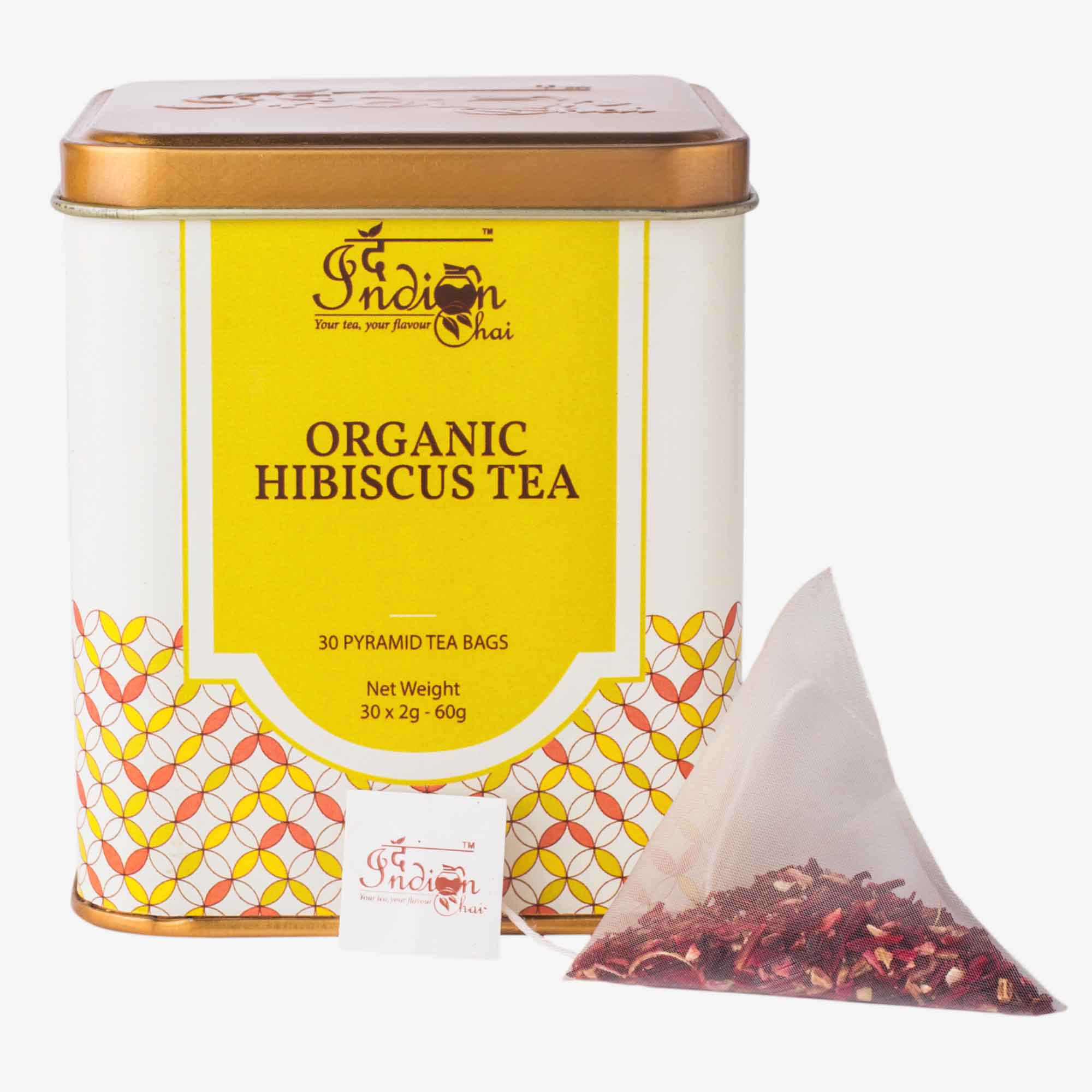 The Indian Chai - Organic Hibiscus Tea 30 Pyramid Tea Bags | Herbal Tisane | Reduces Blood Sugar