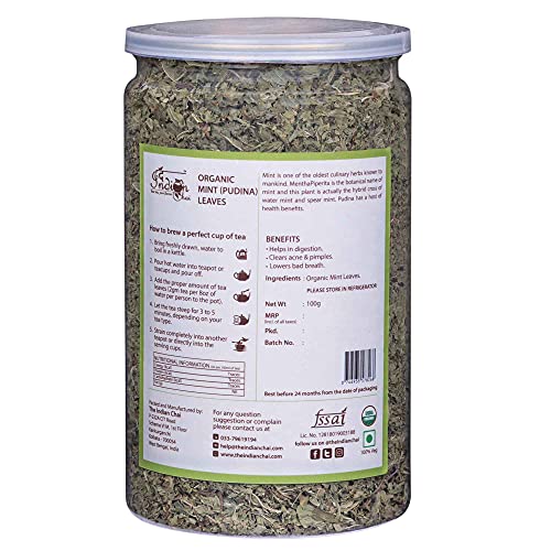 The Indian Chai - Organic Mint Tea (Pudina) Leaves 100g