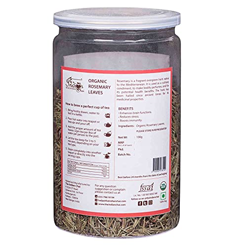 STORAGE: Rosemary Leaves should be stored in the refrigerator where it will stay fresh for several months. PACKAGING: This 100g variant comes in a food grade air tight jar which will make approx. 60 cups of tea.