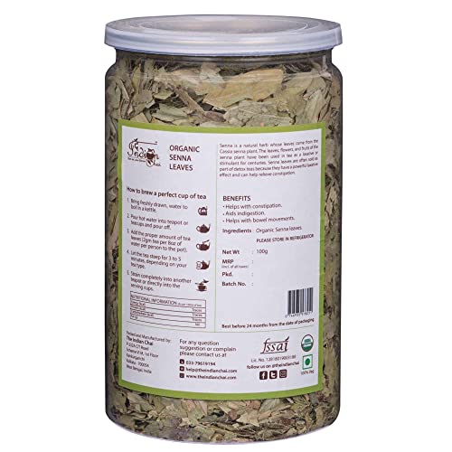 The Indian Chai Organic Senna Tea Leaves (100Gram) | Senna Leaves | Helps With Constipation | Help Improve Digestion | Promotes Skin Health | Caffeine Free | Herbal Tea | Loose Leaves - 100G