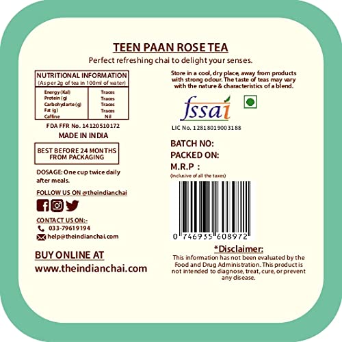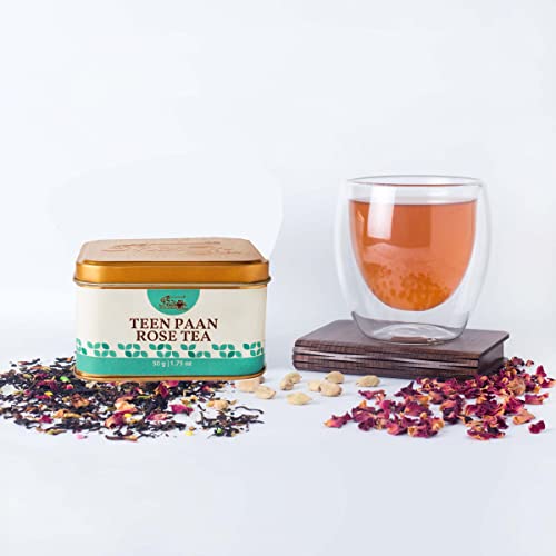 The Indian Chai - Teen Paan Rose Tea 50g for Digestion & Metabolism, Heals Respiratory Problems, Acts as Mouth Freshner, for Men - Women and Kids, Betel Tea