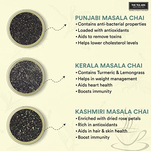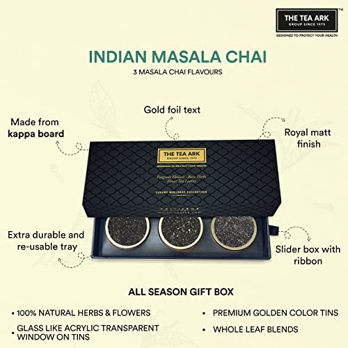 The Tea Ark Indian Masala Chai Tea Gift Set Premium | 3 Different Types of Assorted Tea Flavours Packs | Luxury Gift Hamper Box For Family 30 Grams