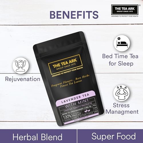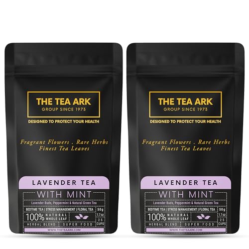 HomeGroceryBeveragesTeaThe Tea Ark Lavender & Peppermint Tea with Natural Green Tea Herbal Bedtime Tea for Sleep Stress Management for Men Women Whole Leaf Blend Loose Leaves 50g Pouch (2 Pack)