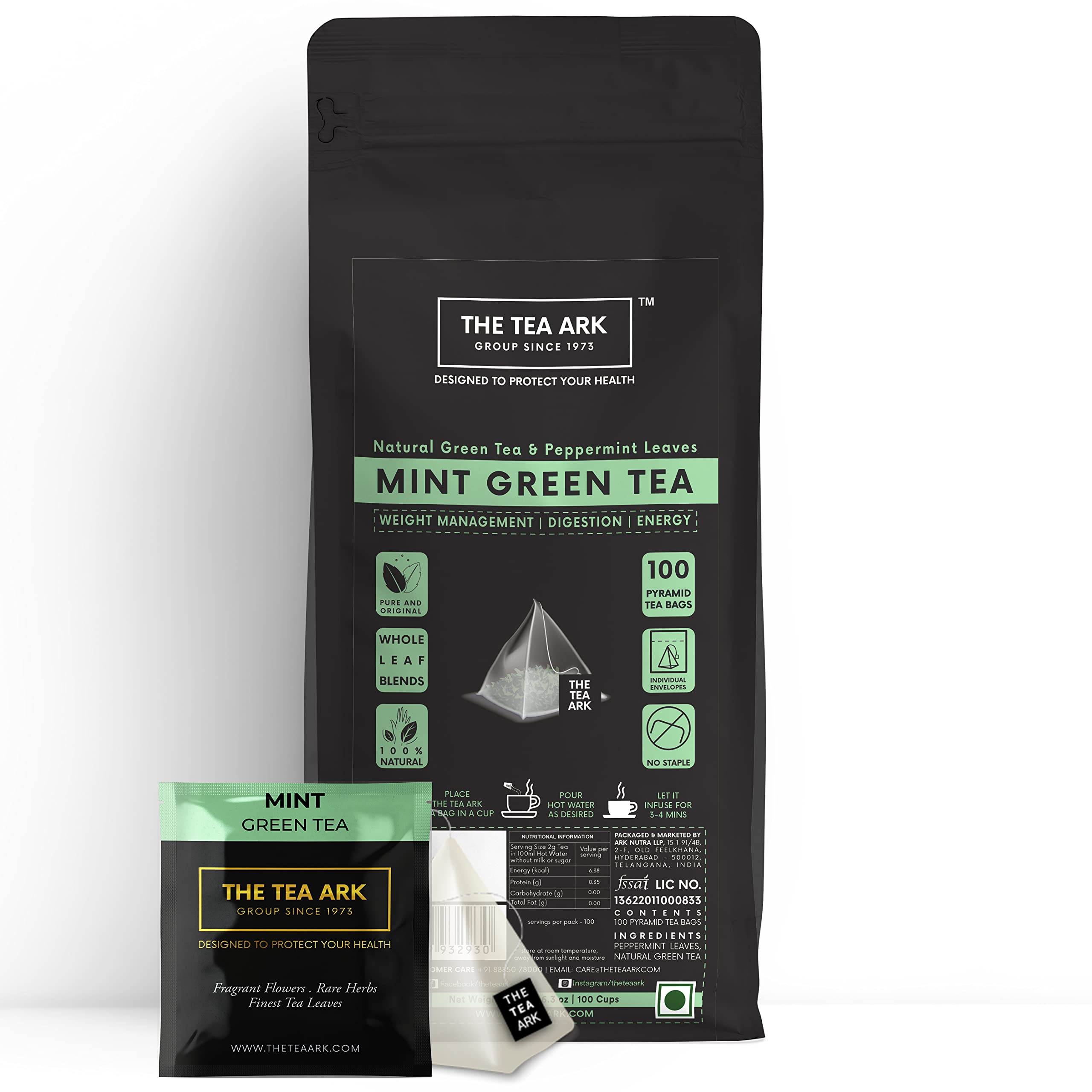 The TEA ARK's Green Tea with Peppermint Tea contains peppermint leaves known for their distinct flavor and aroma contributing to a relaxing tea experience. Peppermint leaves contain menthol offering a refreshing sensation to the palate making it an ideal choice for enjoying after meals or during changing weather conditions.Studies have shown that regular consumption of mint green tea can be refreshing and invigorating providing a pleasant taste experience. The TEA ARK's Green Tea with Peppermint Tea is enriched with green tea leaves offering a unique flavor profile and an enjoyable tea-drinking experience. Make your cup of TEA ARK's Green Tea with Peppermint Tea Steep one pyramid tea bag in hot water for 3-5 minutes to enjoy a flavorful cup of tea or brew longer for stronger taste then remove and savor.
