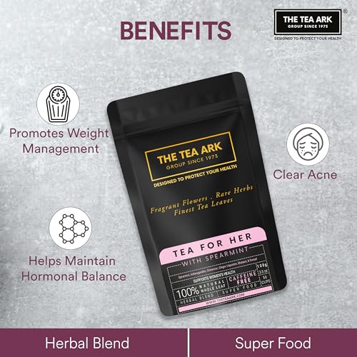 The Tea Ark Tea For Her is an earthy combination of Spearmint Ashwagandha Cinnamon Ginger Licorice Shatavari and Fennel containing 100% natural whole leaf green tea. The ingredients present in the tea such as ginger and fennel have various traditional uses. The tea is free of caffeine and has no artificial colors and preservatives. 100% caffeine Free It is an herbal blend and each pack is 100 gm which can make 50 cups of tea for her. Brewing Instructions Boil 1 cup of water and close the flame add 2 grams of the whole leaf and close the lead let it brew for 4 5 minutes. Strain and fetch your cup and take it to your happy place.