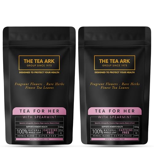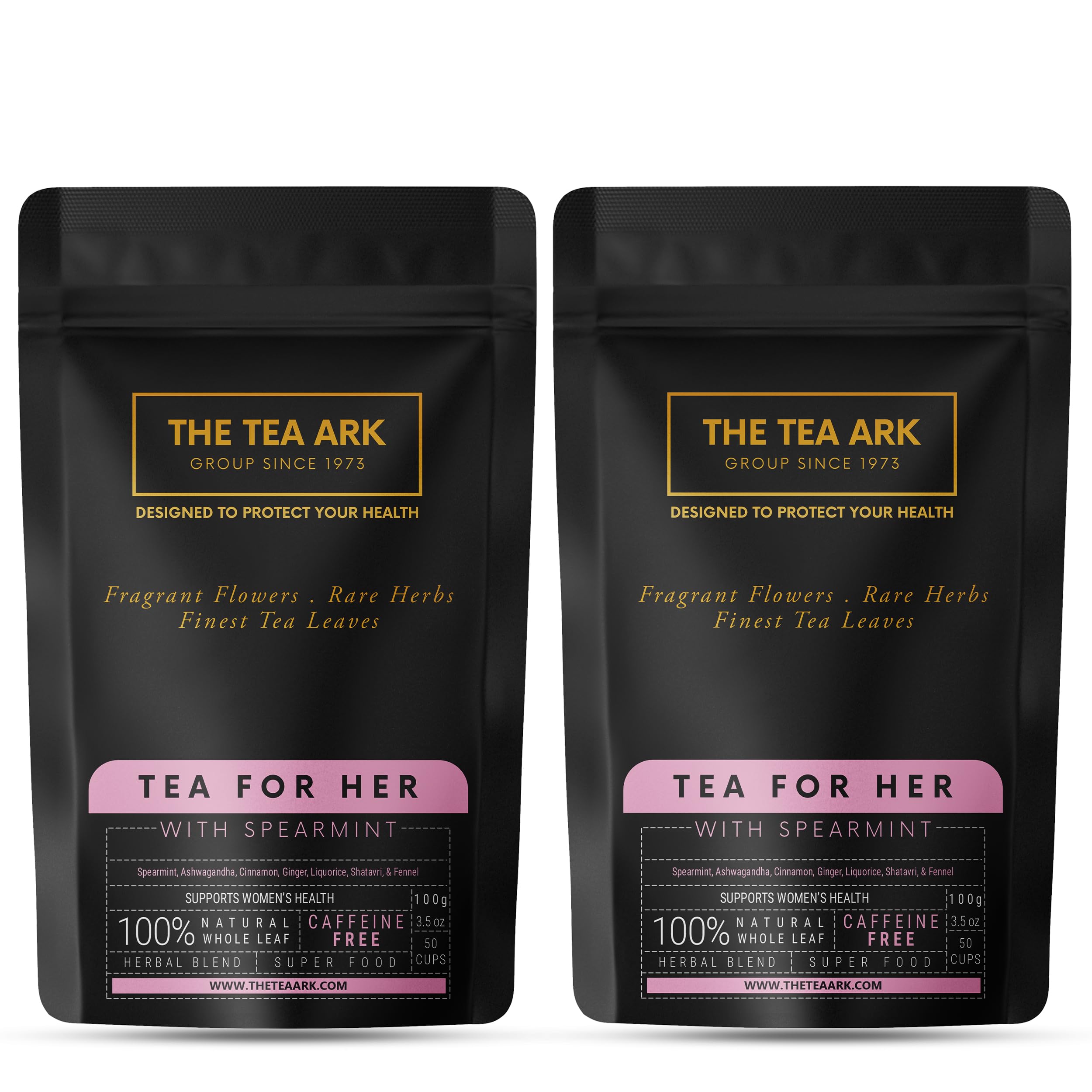 The Tea Ark Spearmint Tea for her PCOS PCOD Herbal Tea for Women with (Shatavari & Fennel) Caffeine Free Hormonal Balance Reduce Unwanted Hair Clear Acne (50 Cups)100g Pouch(2 Pack)