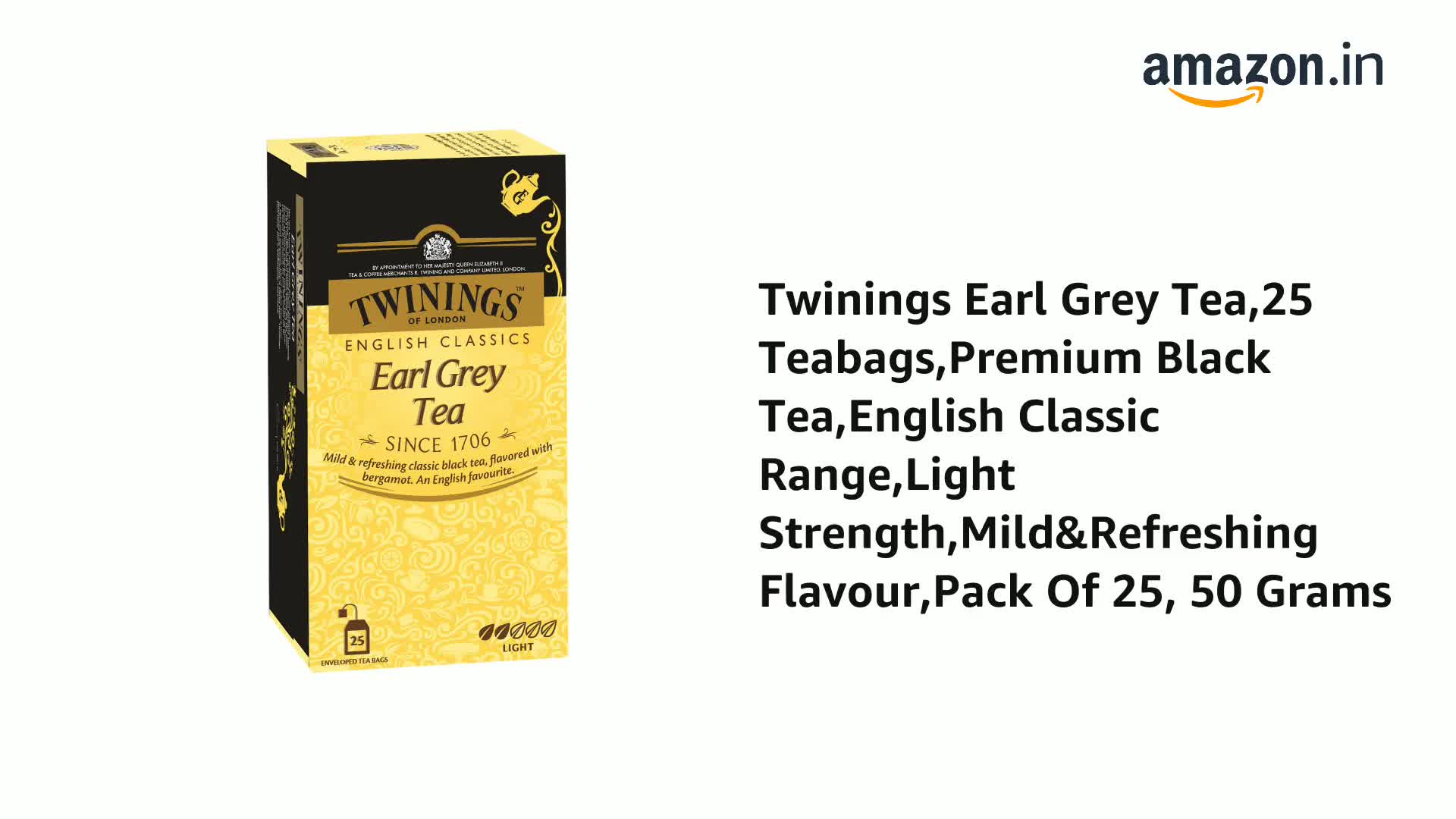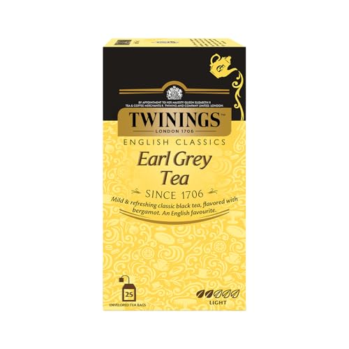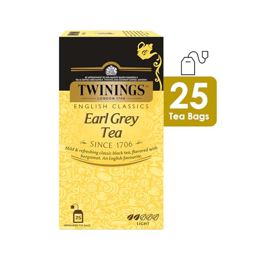 Twinings Earl Grey Tea25 TeabagsPremium Black TeaEnglish Classic RangeLight StrengthMild&Refreshing FlavourPack Of 25 50 Grams