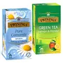 Twinings Green Lemon & Honey & Pure Camomile Tea Green & Herbal Infusion Two Tea Combo Pack Caffeine Free Herbal Tea for Anxiety & Stress Relief Sugar-Free 25 Teabags Each