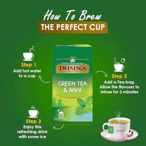 Twinings Green Tea & Mint 25 Teabags Green Tea Cool & Refreshing Mint Flavour 50 Grams