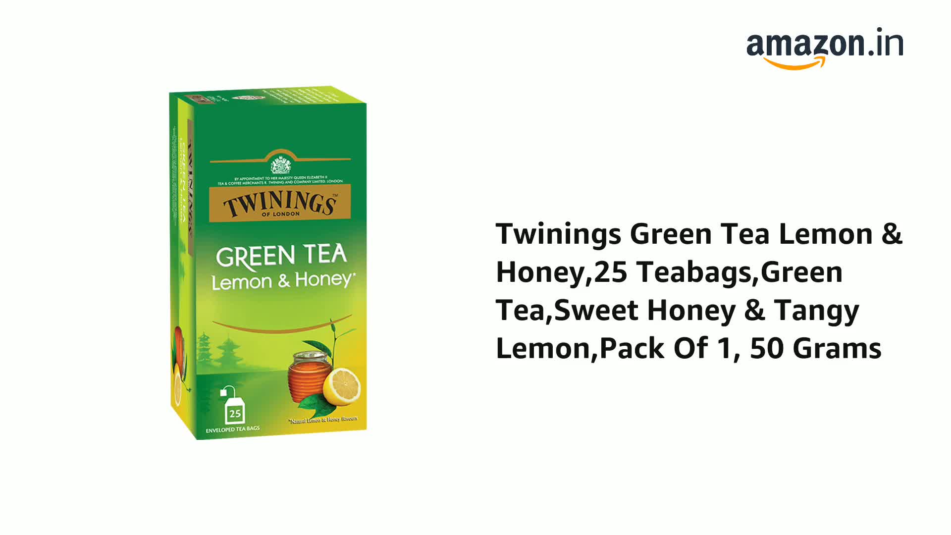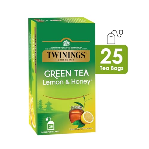 Twinings Green Tea Lemon & Honey,25 Teabags,Green Tea,Sweet Honey & Tangy Lemon,Pack Of 1, 50 Grams