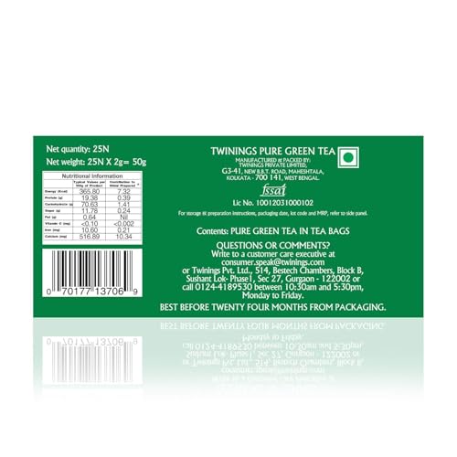 Twinings Pure Green Tea 25 Teabags Green Tea Perfectly Balanced & Refreshing 50 Grams