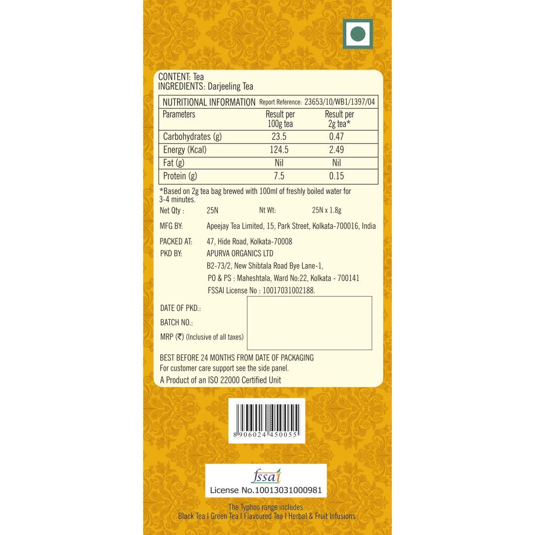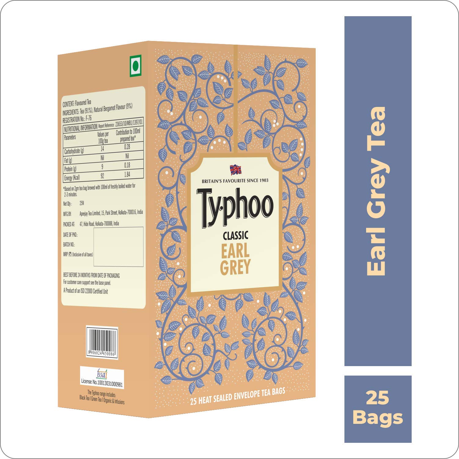 Typhoo Luxurious Flavoured Earl Grey Tea Bags (25 Tea Bags)The perfect drink to refresh your day. Enjoy the gentle flavors of bergamot in your daily brew. Best enjoyed without milk.Typhoo Darjeeling Black Tea Bags (25 Tea Bags)The perfect brew for your discerning taste. This champagne of all teas has a toasty muscatel flavor. Handpicked from the himalayan foothills they are a connoisseurâs choice.