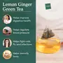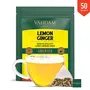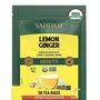 Vahdam Lemon Ginger Green TeaIngredients:Green Tea, Ginger, Orange Peel, Black Pepper, Lemon Extracts, Tulsi.Directions to Use:Heat 200ml Water to 80-90Degree Celsius; Steep 2-3 Mins;For iced, refrigerate for 3-4 hours. Add ice cubesDimensions: 4 x 18 x 23 cmQuantity: 50 tea bags of 2 grams each (100g)Legal Disclaimer: Product images are for illustrative purposes only. Images/packaging/ labels may vary from time to time due to changes made by the manufacturer's manufacturing batch and location. The product d