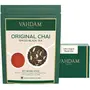 Vahdam Original Chai Spiced Black TeaIngredients:Black Tea, Cardamom, Cinnamon, Black PepperHow To Use:200ml Water at 80-90°C; Add 2 g (1 teaspoon) to 10 ml of hot water; For iced, refrigerate for 3-4 hours.Add ice cubes.Dimensions: 9.2 x 11.3 x 13.3 cm; 99.22 gmLegal Disclaimer: Product images are for illustrative purposes only. Images/packaging/ labels may vary from time to time due to changes made by the manufacturer's manufacturing batch and location. The product desc