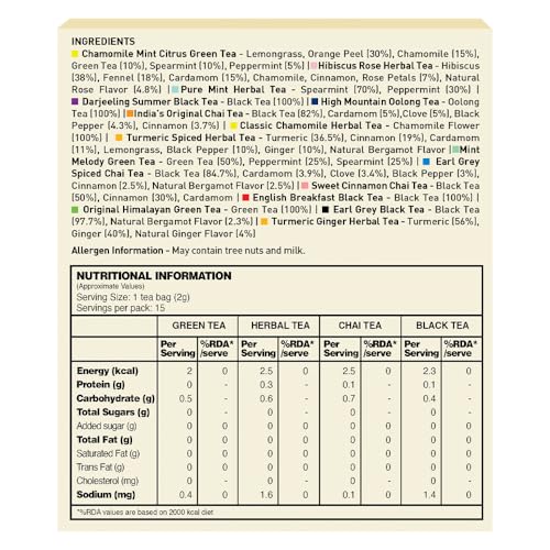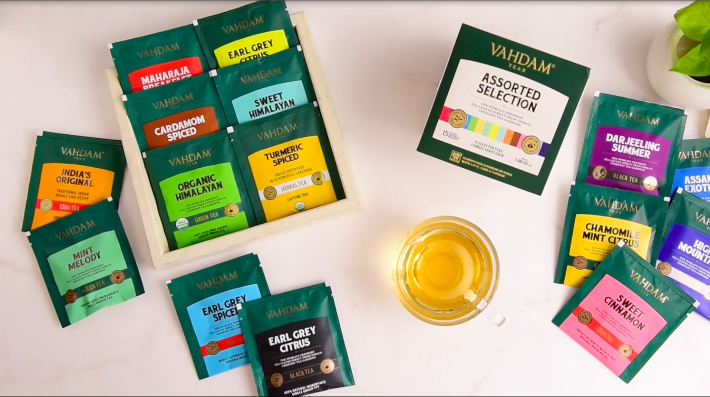 VAHDAM Tea bags Assortment - SAMPLER TRIAL PACK | Tea assortment of 15 Premium Tea bags |