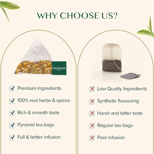 VAHDAM Turmeric Spice Herbal Tea Bags - 50 Pyramid Tea Bags | Caffeine Free Non-GMO Pure Herbal Tisane - Savory & Spicy | Whole Loose Leaf Teabags | Resealable Ziplock Pouch
