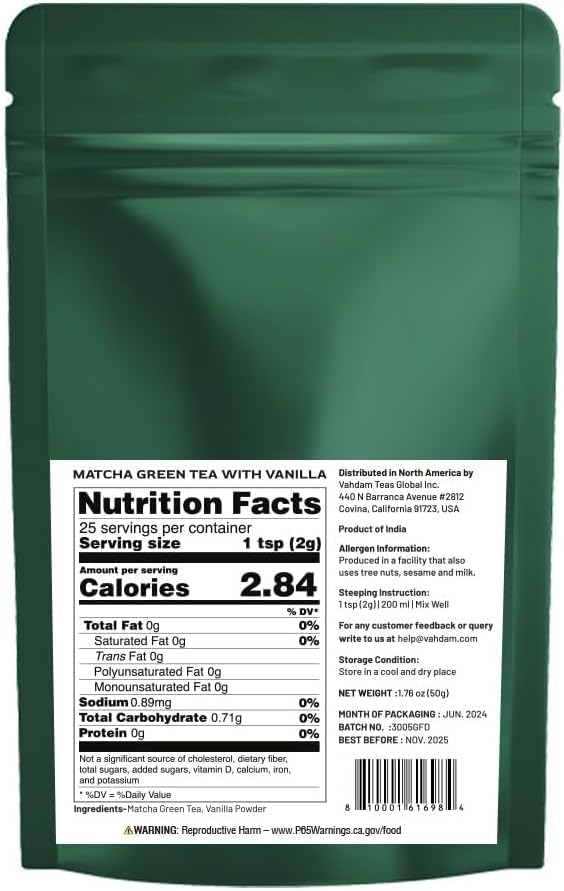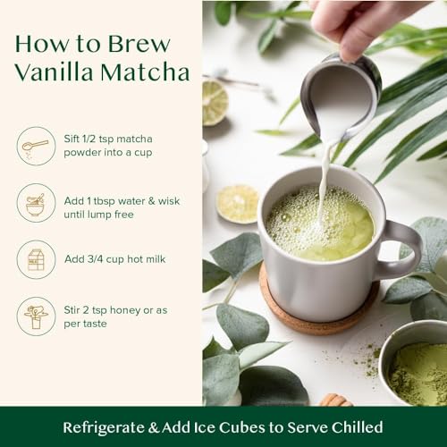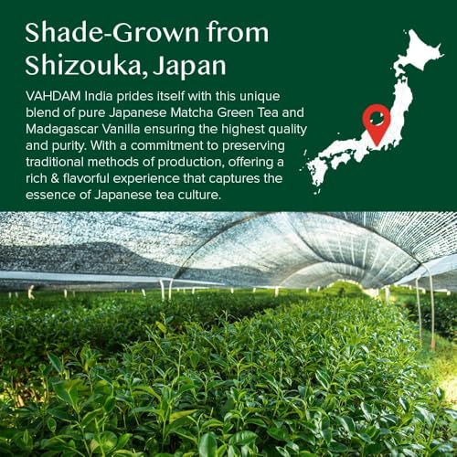 JAPAN ORIGIN MATCHA TEA blended with Delicious Vanilla Tea- Matcha Green Tea Powder Sourced Direct Farms in Uji Japan. It is Non-GMO Gluten Free & Vegan.