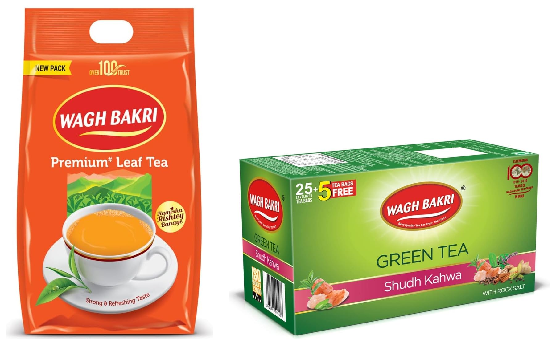 Wagh Bakri Premium Leaf Tea Pack 1kgWhy Wagh Bakri Premium Leaf Tea? At Wagh Bakri Tea Group we believe tea is a social catalyst that spreads peace and harmony bringing people together to build relationships. To make your tea moments more delightful and bonds stronger Wagh Bakri brings to you Premium Leaf Tea known for its premium quality for over 100 years. What makes it unique? Wagh Bakri Tea is renowned for its premium quality which promises strong taste stimulating aroma and rich colour. Handpicked from the best tea gardens in India and blended by tea experts this premium leaf tea ensures a delightful tea drinking experience. When to enjoy this tea? Enjoy a hot cup of premium goodness and rejuvenate your senses anytime. Storage: Store in a cool dry place.Wagh Bakri Green Tea Shudh Kahwa Tea Bag 25 Tea Bag*2.5g 62.5gWagh Bakri Tea master blenders & tasters have selected the finest green tea made from the leaves of Camellia Sinensis that have undergone minimal oxidation during processing Wagh Bakri Green Tea is naturally rich in antioxidants (flavonoids).