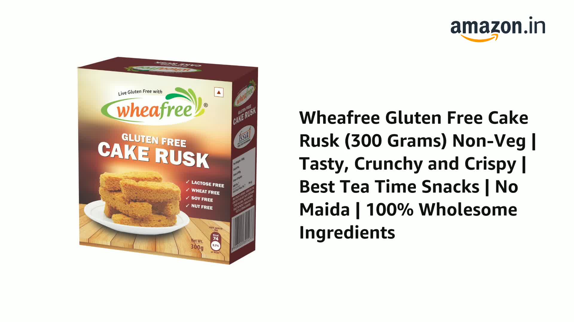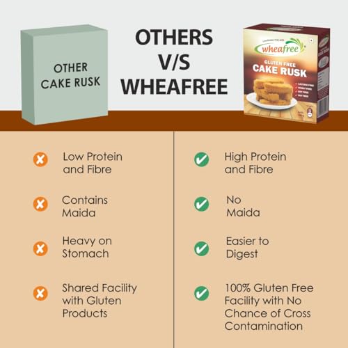 Wheafree Gluten Free Cake Rusk (300 Grams) Non-Veg | Tasty Crunchy and Crispy | Best Tea Time Snacks | No Maida | 100% Wholesome Ingredients
