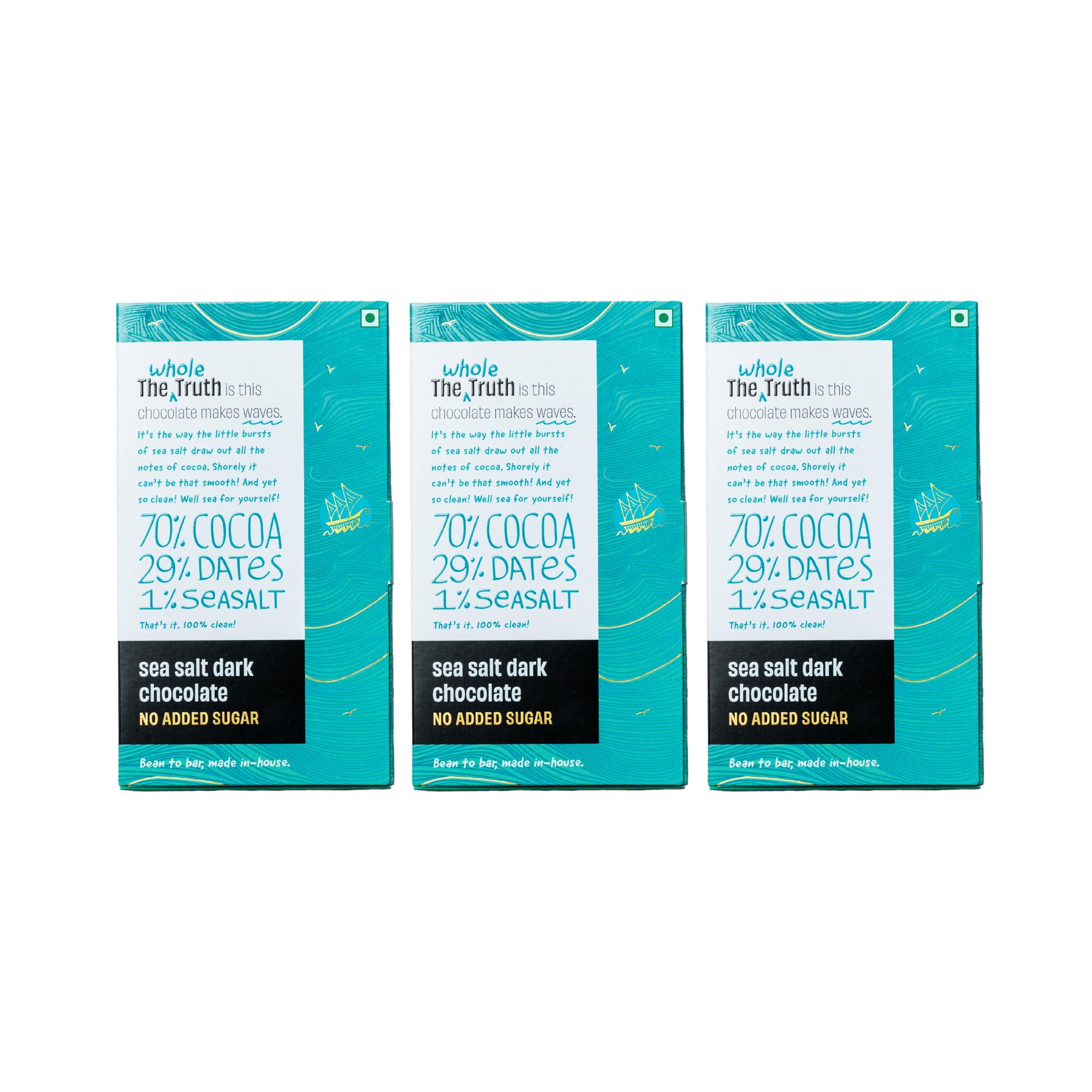 The Whole Truth Dark Chocolate - Sea Salt | Pack Of 3 X 80 Gram |Sweetened Only With Dates | 79% Cocoa 29% Dates 1% Sea Salt | No Artificial Flavours | Portion Controlled | 100% Vegetarian