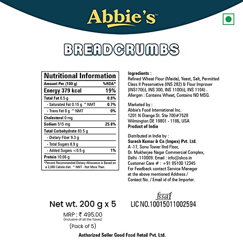 Abbie's Breadcrumbs are made from bread that has been custom baked at perfect temperature to make light and flaky crumbs with exceptional texture and crunch. Abbie's breadcrumbs are perfect coating for frying and baking seafood meat poultry and vegetables.