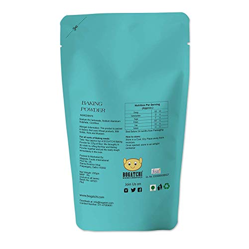 BOGATCHI Baking Powder for Baking Cake Breads Pizza Muffins Dhokla Idlis Naans - Double Acting Baking Soda Cooking Soda |Baking Ingredients 200g Free Measuring Spoon