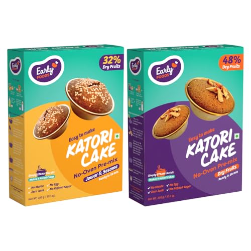 Early Foods : Assoretd Pack of 2 Jowar Sesame & Dry Fruits Cake Mix | No Maida or Refined Sugar Free Cake Mix | Millet Cake Mix | Eggless Cake Mix | No Oven or Microwave, Steamer Cooker Cake Mix 300 gms x 2