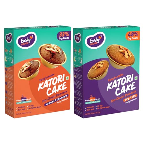 Early Foods: Assorted Pack of 2 : Almond Choco & Dry Fruits Katori Cake Mix | Millet Cake Mix| Instant Dry Fruit Cake Mix | No Maida or Refined Sugar Free Cake Mix| Eggless Cake Mix | No Oven or Microwave, Steamer Cake Mix 300 gms x 2