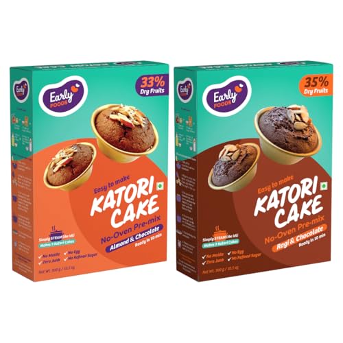 Early Foods : Assorted Pack of 2 Almond Choco & Ragi Choco Katori Cake Mix | Instant Millet Cake Mix | No Maida or Refined Sugar Free Cake Mix | Chocolate Cake Mix | Eggless Cake Mix | No Oven or Microwave, Steamer Cake Mix 300 gms x 2