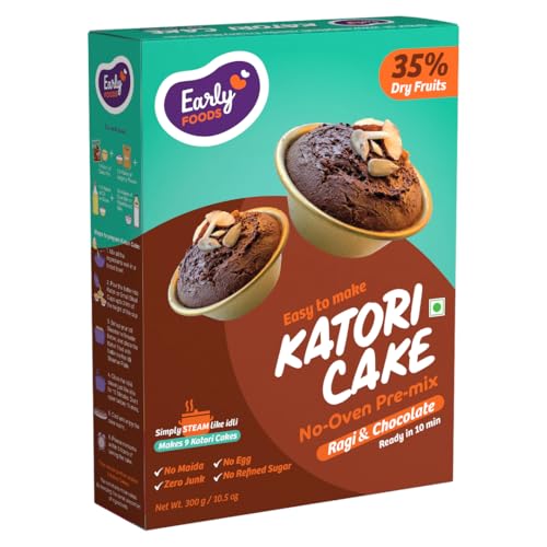 Early Foods : Ragi & Choco Katori Cake Mix | Instant Ragi Cake Mix | No Maida or Refined Sugar Free Cake Mix | Chocolate Cake Mix | Eggless Cake Mix | No Oven or Microwave, Steamer Cake Mix 300 gms