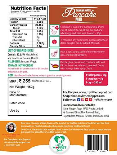 Little Moppet Foods Banana Oats Pancake Mix - 150g