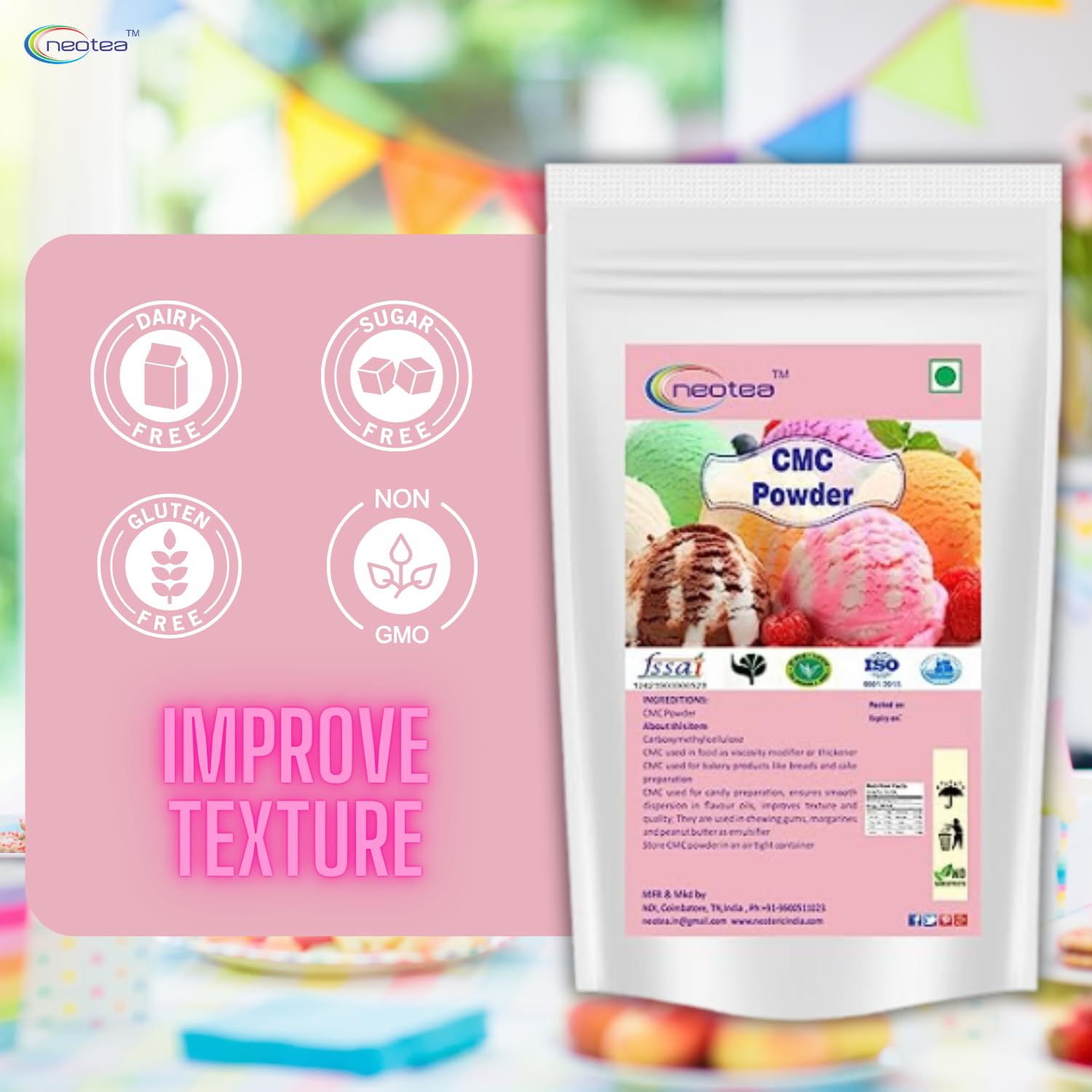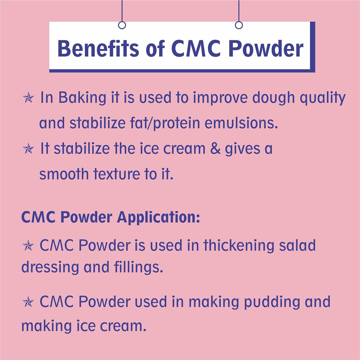 CMC (carboxyl methylcellulose) is a food additive used as a thickening emulsifying anti-caking and preservative agent an emulsifying agent for oils waxes and solvents. Gms and CMC (carboxyl methylcellulose) are compounds used for stabilizing ice creams and are available in specialty food stores or bakeries. CMC is a well known emulsifying agent which is extensively used by the modern foodstuffs industries. CMC is largely used in baking preparations to add body to the food. It is responsible for giving ice cream and whipped cream its smooth texture. It contains both water and oil soluble groups in one molecule. This characteristic structure enables it to be a very effective emulsifier. It is nontoxic and therefore very suitable for use in food formulation. It belongs to the class of non-ionic emulsifiers.