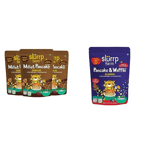 Slurrp Farm No Maida Pancake Mix| Chocolate- Pack of 3 X 150g & Slurrp Farm No Maida Pancake Mix| With Real Blueberries- 150g