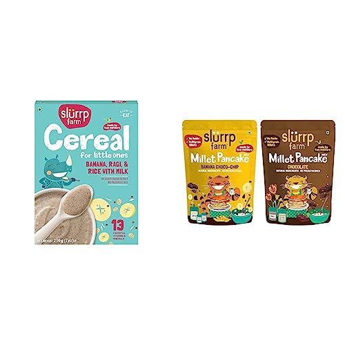 Slurrp Farm Organic No Sugar Baby Cereal | Ragi Rice and Banana with Milk 200g & Instant Breakfast Millet Pancake Mix Banana Choco-Chip Supergrains and Chocolate Natu