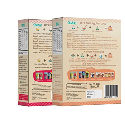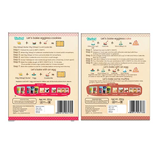 • Timios Cookie Mix-Loads of healthy goodness: Made with multigrains and jaggery Timios Bake mixes are rich in Protein Iron and Calcium.