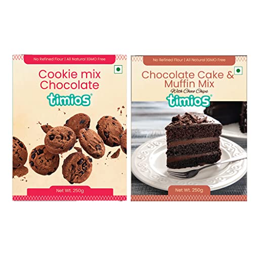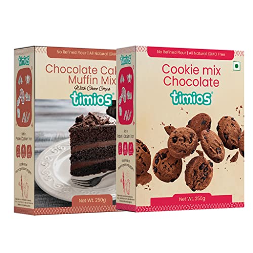 Timios Multigrain Eggless Instant Chocolate Cake & Cookie Mix| No Maida | Sweetened with Jaggery | Rich In Protein,Iron & Calcium | Pack of 2 | 250 grams Each