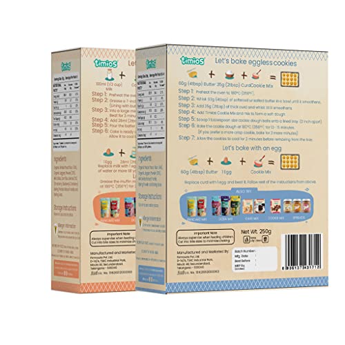 • Timios Cookie Mix-Loads of healthy goodness: Made with multigrains and jaggery Timios Bake mixes are rich in Protein Iron and Calcium.