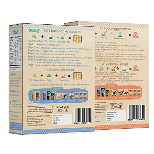 • Timios Cookie Mix-Loads of healthy goodness: Made with multigrains and jaggery Timios Bake mixes are rich in Protein Iron and Calcium.