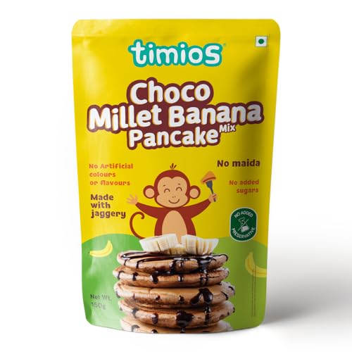 Timios Multigrain No-Maida Choco Banana Pancake Mix | Organic Millet Instant Breakfast & Healthy Dessert Mix for Kids & Adults | 150 g (Choco Banana Pancake Mix)