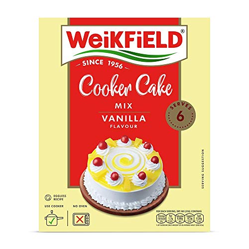 Wekifield Cooker Cake Mix Chocolate 150gWeikfield's Chocolate flavoured Cooker Cake Mix is a tasty simple & quick solution for mothers to pamper their kids and family. A 100% Vegetarian Eggless Cake mix. Cake can be made using your normal Cooker at home. No microwave required for baking your cake. Makes delicious soft and yummy cakes at any time easily. Available in Chocolate and Vanilla flavours.Wekifield Cooker Cake Mix Vanilla 150 gDelicious vanilla flavoured Weikfield eggless cooker cake mix. Easy to make. All you need to add is just milk and oil..